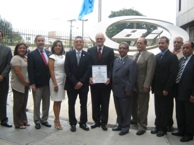 La primera organización gremial de ingenieros químicos en el mundo se fundó en EEUU hace 105 años y en nuestro país hace 51 años, el 16 de octubre de 1961 cuando fue aprobada la creación del CIQG por el Consejo Superior Universitario de la USAC. Desde entonces, ha colegiado 1991 profesionales de la Ingeniería Química, Ingeniería Química Industrial, Ingeniería en Alimentos, Ingeniería Agroindustrial e Ingeniería Ambiental; ha tenido 42 Juntas Directivas electas en forma transparente sin ningún caso de impugnación. En la fecha del aniversario de la Ingeniería Química se celebra también el día del Ingeniero Químico, cuyo punto central es la designación del Profesional del Año. La celebración se inicia con un acto del Programa Cívico del Banco Industrial, donde el Profesional del Año iza la bandera nacional en un solemne y emotivo acto cívico. Este Programa Cívico fue creado hace aproximadamente 30 años por un fundador del CIQG, el Ingeniero Químico Ramiro Castillo Love, colegiado No. 5, también fundador y ex-presidente de ese banco. Concluye con un almuerzo familiar en que se entrega un reconocimiento al Profesional del Año y a los colegas que cumplen 25 años de colegiación. En 1986 se reconoció al primer Profesional del Año del CIQG, siendo designado el Ing. Carlos E. Molina promotor de la fundación del CIQG y el primer presidente de su Junta Directiva. Este año se designó al Ingeniero Químico Mario Fernando Montenegro Castillo, colegiado 92, por su trayectoria profesional en la industria y en el mercado mayorista de electricidad, así como por su apoyo al CIQG. Este reconocimiento establece ejemplos de vida profesional dentro de nuestro gremio para que sirvan de ejemplo e inspiración a las nuevas generaciones y honra tanto a quien lo recibe como al CIQG. |