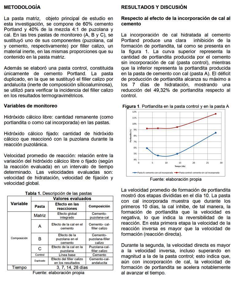 Palabras clave: aglomerante, puzolana natural, cal, termogravimetría, microscopía, cemento Portland.