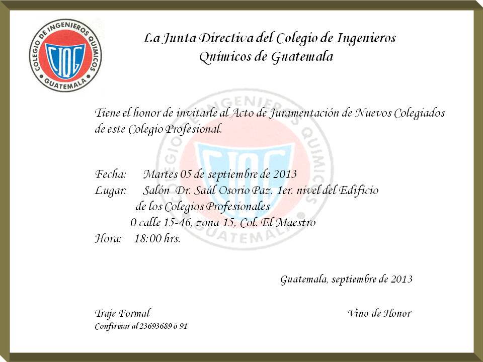 Voces de los expertos ¿Qué es y porqué se creó la Comisión Académica? Ing. Oscar Avendaño Arenas Coordinador de la Comisión Académica del CIQG Mediante el Acta Número 1274 punto 8.8, de la sesión de la Junta Directiva del Colegio de Ingenieros Químicos de Guatemala -CIQG-, celebrada el día 21 de marzo 2013 se creó la Comisión Académica con los propósitos de atender aspectos que se relacionan con el Artículo 90 de la Constitución Política de la República de Guatemala, el Decreto 72-2001 Ley de Colegiación Profesional Obligatoria y los Estatutos del Colegio. Todo esto está relacionado con las funciones del CIQ, especialmente a los conceptos de la Defensa y protección del ejercicio profesional de los agremiados, y la Calidad de Colegiado Activo a que se refieren los artículos Números: 3 Naturaleza y fines de los Colegios, inciso d); 5 Requisitos de Calidad; 6 Pérdida de la Calidad de Activo; 7 Constancia de Calidad, del Decreto 72-2001. La Asamblea de Presidentes de los Colegios Profesionales, por medio de la Comisión Académica, mantiene reuniones con los miembros de las Comisiones Académicas de los Colegios Profesionales para que elaboren y emitan los Reglamentos correspondientes al concepto de Créditos Profesionales, que según la Ley de Colegiación Profesional deben cumplirse para mantener la Calidad de Colegiado Activo. Por otra parte, la Asamblea de Presidentes de Colegios Profesionales está facultada a determinar en cual Colegio Profesional deben colegiarse los graduados de carreras afines (Artículo 41 Colegiación afín), cuyas características académicas tengan más relación con carreras que dieron origen a determinado Colegio Profesional, puesto que para la creación de un nuevo Colegio se requiere la existencia de, como mínimo, 500 personas graduadas de la misma o similar especialidad en el grado de licenciatura (Artículo 4 Constitución y registro, del Decreto 72-2001). Este es el caso del Colegio de Ingenieros Químicos de Guatemala, quien dentro de sus agremiados se tiene graduados de carreras de Ingeniería Química, Ingeniería Química Industrial, Ingeniería de Alimentos, Ingeniería Ambiental, Ingeniería Agroindustrial, entre otros. Puesto que en el Artículo 4 de los estatutos del CIQG se determina que: