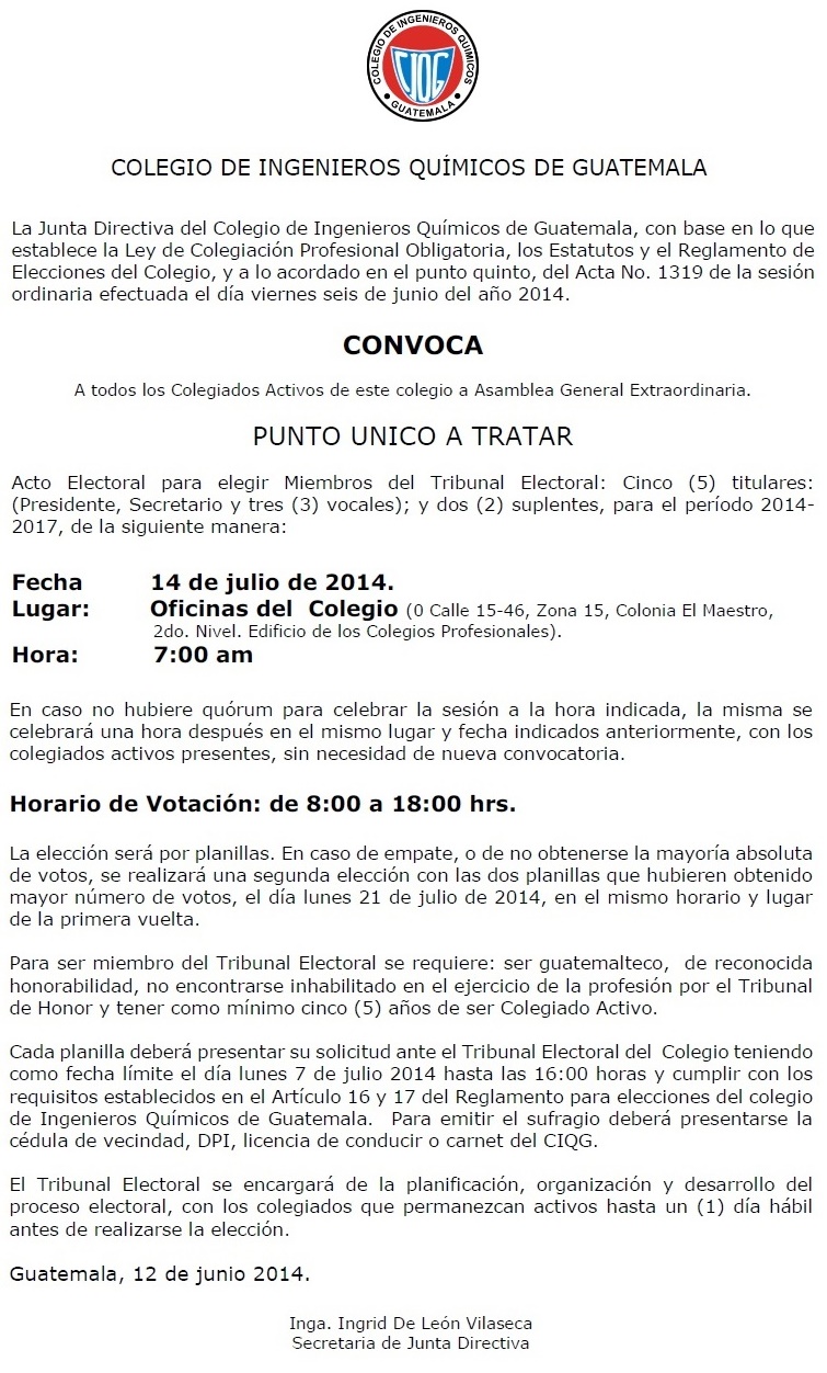 El prestigio o reputación de una institución se basa en la confianza que produce el desempeño esperado de sus miembros basado en su comportamiento observado en el pasado y en los valores que impulsan sus actividades y que son parte de una tradición forjada a través de una trayectoria desde su fundación y que ha sido fortalecida por las generaciones pasadas. Estos valores deben permanecer como guía de las acciones de sus miembros y el comportamiento pasado como ejemplo para las acciones futuras. Esta reflexión es muy oportuna en estos momentos, pues en menos de dos meses se estarán eligiendo a las autoridades que dirigirán al CIQG por los próximos 2 años y es importante que quienes con su voto lo decidirán, verifiquen que la planilla por la que se inclinen, cumpla con estos valores para no arriesgar el prestigio y reputación del Colegio. Una decisión equivocada puede afectar negativamente el prestigio del colegio. En la parte administrativa debe prevalecer la transparencia y la rendición de cuentas en el uso de los recursos del Colegio, así como velar que la gestión sea eficaz y eficiente. En las relaciones con los colegiados y con las otras entidades del Colegio (Tribunal de honor, Tribunal Electoral y Plan de Prestaciones) debe existir respeto, tolerancia, solidaridad y armonía, para garantizar que se cumpla con la Ley de Colegiación Obligatoria, Estatutos y Reglamentos. El Colegio se debe a sus colegiados y debe estar al servicio de su defensa, superación y mejoramiento, como lo establece la Ley de Colegiación Obligatoria y sus Estatutos, debiendo ser independiente de cualquier otra institución o grupo; deberá tenerse especial cuidado de evitar que se utilice al CIQG como un vehículo para lograr intereses sectarios o resultados electoreros. Esta recomendación se basa en la experiencia de los últimos años que ha demostrado que durante esas actividades electorales, surgen intereses muy particulares como obtener, proteger, conservar o mejorar un puesto de trabajo por esta vía, buscar un protagonismo o sencillamente considerar al CIQG como un club o extensión de otra institución académica, gubernamental o privada, relegando a un segundo plano los intereses del gremio. Este o cualquier otro conflicto de intereses debe ser rechazado del seno de nuestro colegio. En cuanto a la información personal que los colegiados proporcionan al colegio para su administración, esta debe ser respetada y deberá ser revelada solo cuando el interesado así lo manifieste o cuando exista una orden judicial. Otro riesgo que en futuro puede afectar ese prestigio gremial se deriva del deterioro de la calidad educativa que deviene de la incapacidad o falta de interés de algunos centros de enseñanza superior para establecer criterios y controles en cuanto a calidad educativa como a homologación. Este riesgo nos faculta a tomar acciones para prevenir, corregir o rechazar estos casos. Una herramienta valiosa que nos permite la ley para lograr este propósito es el Reglamento de Créditos Profesionales. En nuestra gestión creamos la Comisión Académica con otros fines, pero puede ser valiosa para valiosa para prevenir, corregir o resolver estos casos. A los colegas que participarán en las futuras elecciones del CIQG, les instamos a preservar e incrementar con buenos planes de trabajo el prestigio del colegio ganado por mas de 60 años, el cual es su activo mas valioso. |