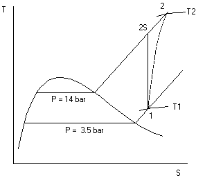 Para un COMPRESOR el trabajo desarrollado por unidad de masa fluyendo se determina a partir de la eficiencia isentrópica y del trabajo isentrópico desarrollado.